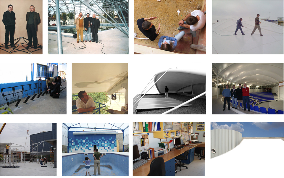 La oficina Nd_Arquitectos fue fundada por Juan Carlos Gómez de Cózar en 1996. Desde el principio se enfocó el ejercicio de la arquitectura como consecuencia de la investigación. Ya desde el comienzo se alternan proyectos (escenarios para la EXPO de Lisboa, 1998) con el desarrollo de prototipos arquitectónicos (Mallas Desplegables de Barras, patente Florín). En esa primera etapa (1996-2001), junto con el arquitecto Rafael García Diéguez, se realiza el Proyecto de Cobertura y Climatización de la Piscina Municipal de Gines, Sevilla. Está resuelta con una malla desplegable patentada utilizada tanto para cubierta como para la torre de instalaciones. Supone la primera aplicación del Sistema de Mallas Desplegables patentado y la demostración de que es posible construir de un modo diferente. En la etapa siguiente (2002-2005), en diversos proyectos con la colaboración de la arquitecta Mayca de Sosa Gálvez, se pone de manifiesto el trabajo de investigación realizado en los años anteriores. Aunque con formas y usos muy diversos, todos los proyectos realizados en esta etapa (Ampliación de colegio en Bollullos, Sistema modular de pérgolas en Espartinas, Recepción de yates en el Puerto de Sevilla, Centro Multiusos en Pilas) ponen de manifiesto que es posible construir de un modo rápido entendiendo la arquitectura como un proceso de rápido montaje y que la sostenibilidad y ecología tienen más que ver con la ligereza y la capacidad de adaptación de las construcciones que con toda una serie de conceptos teóricos difícilmente aplicables. Es en esa serie de proyectos donde se emplean con carácter permanente procedimientos y materiales de construcción hasta ahora reservados sólo a las construcciones denominadas efímeras. La conclusión de todo este proceso es el Centro Multiusos de Pilas en donde por primera vez se combinan materiales diversos (membranas textiles, paneles de cerramiento...) para conseguir un edificio versátil. |